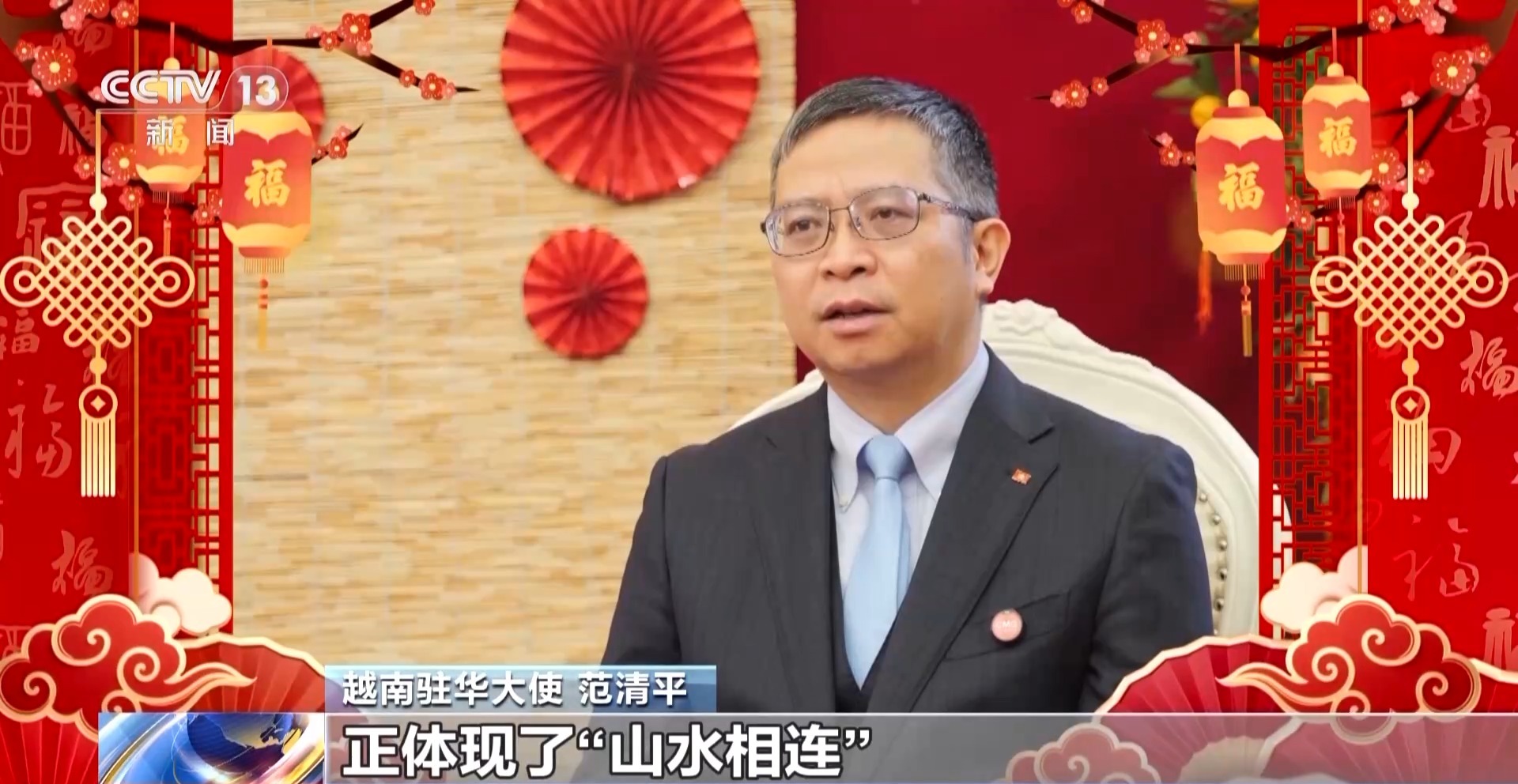 越南和中国是社会主义友好邻邦。越南驻华大使范清平能说一口流利中文,2026年春节将是他在中国过的第9个春节。在他看来,春节最具价值的就是其悠久的传统和团圆精神。在越南,老百姓过春节会包方形粽子、放生鲤鱼等。而他最喜欢的部分则是阖家团聚的时刻。