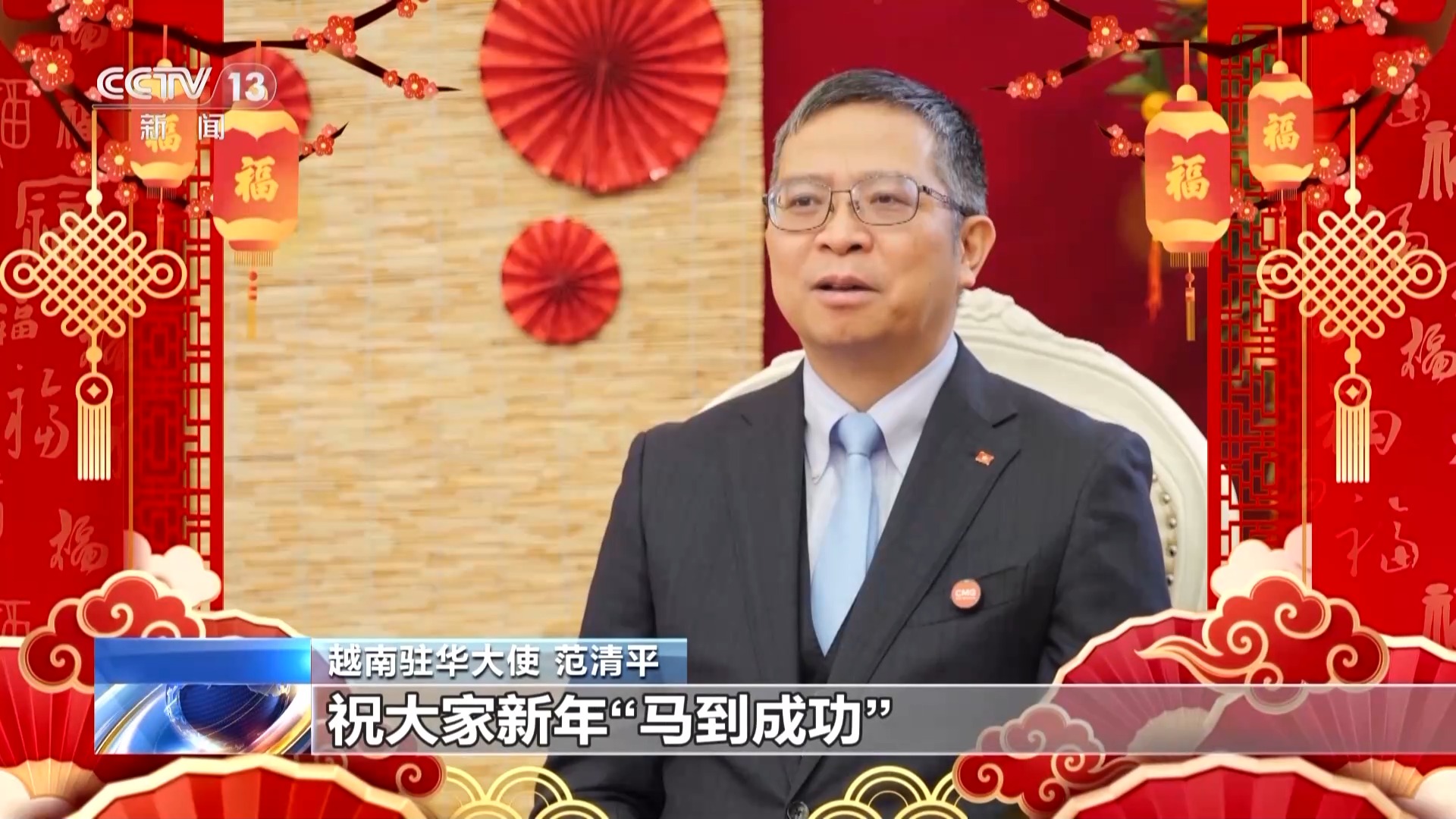 越南驻华大使 范清平:值此丙午马年春节来临之际,我谨向广大中国朋友致以最美好的新年祝福!祝愿大家和家庭新年快乐,身体健康,万事如意!愿我们都能秉持“龙马精神”,做到“一马当先”,祝大家新年“马到成功”!