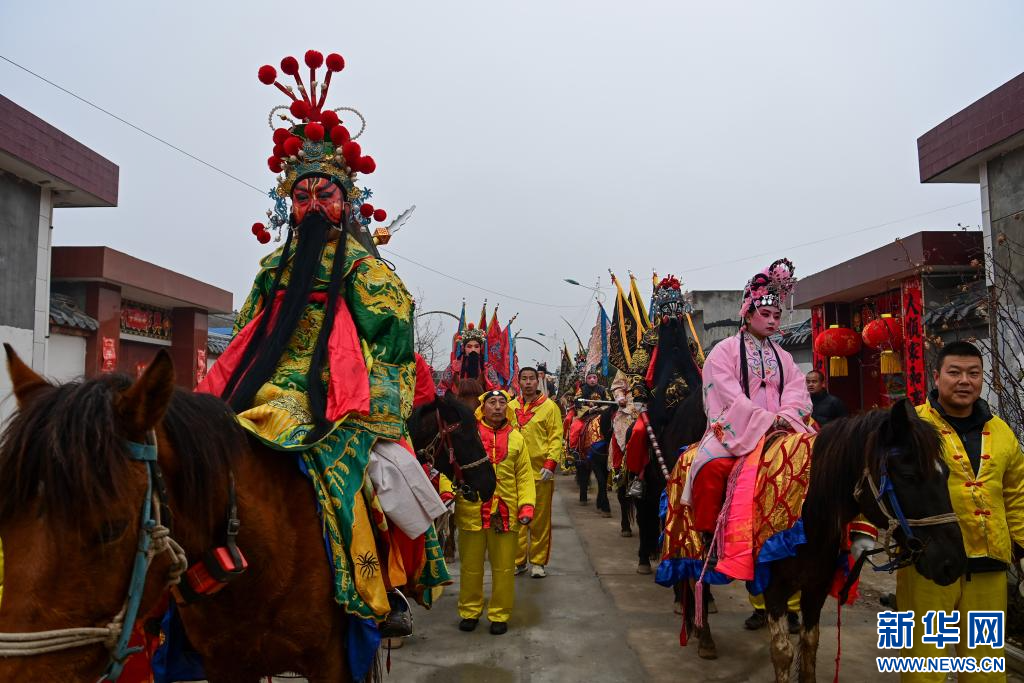 3月2日,陇县黄花峪村社火队在游演途中。新华社记者 邹竞一 摄