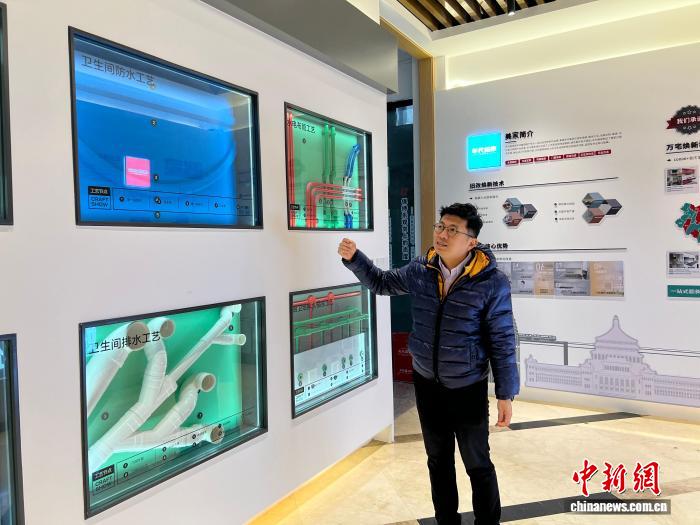 2月7日,台商黄光志介绍旧房改造工艺。中新社记者 钟旖 摄