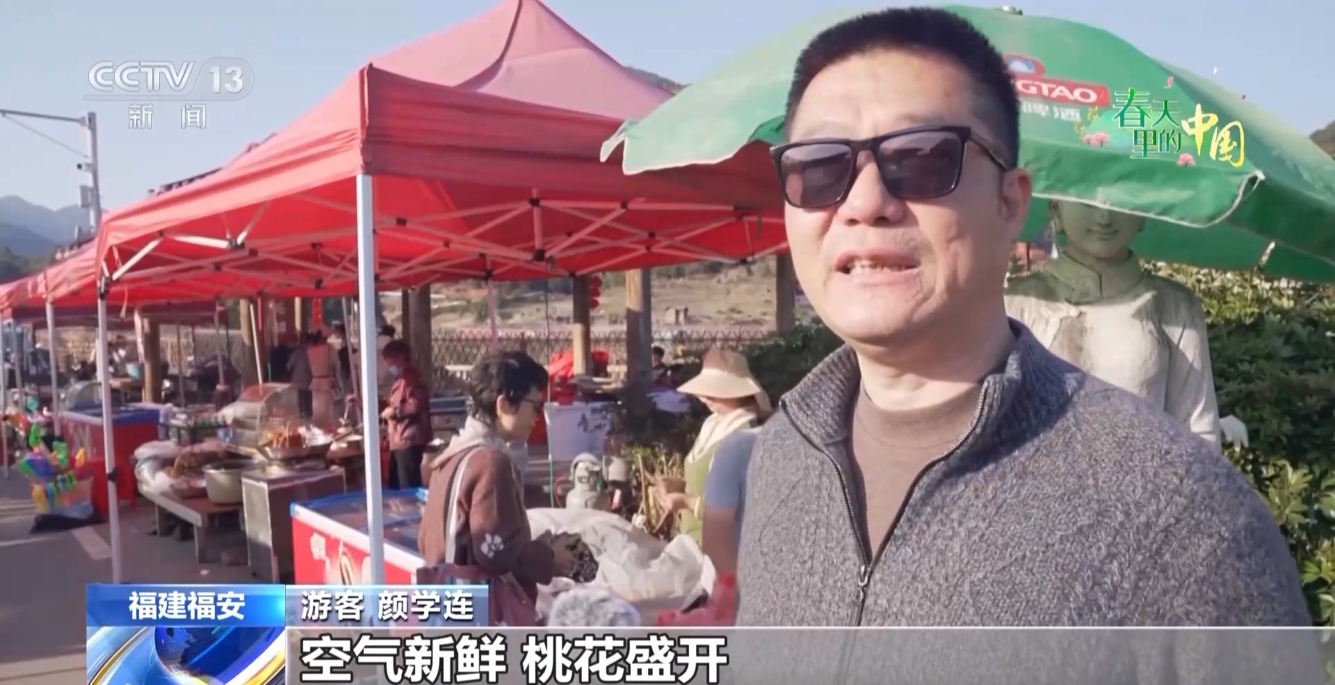 游客 颜学连:空气新鲜,桃花盛开,这是乡村旅游的特色。小吃也很多,放松心情,享受生活。