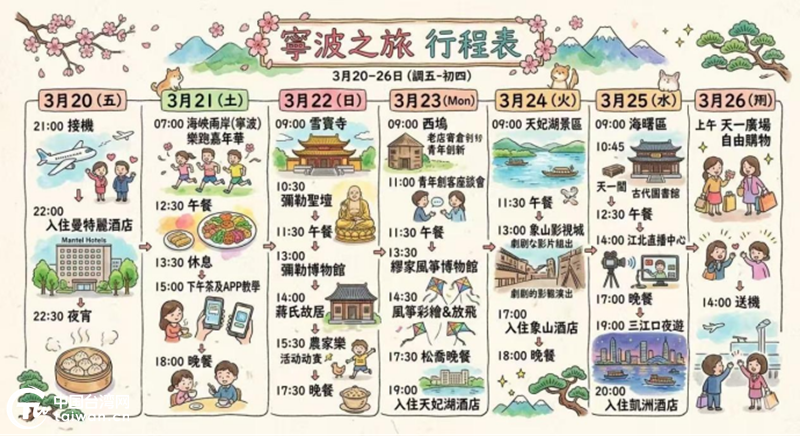 3月20日至26日,埔里青商会一行在宁波开展为期7天的参访交流。行程中,台胞们不仅参与了海峡两岸(宁波)乐跑嘉年华,还将走进雪窦寺、弥勒圣坛、天妃湖景区等地,体验自然与人文交融之美,增进交流互动。