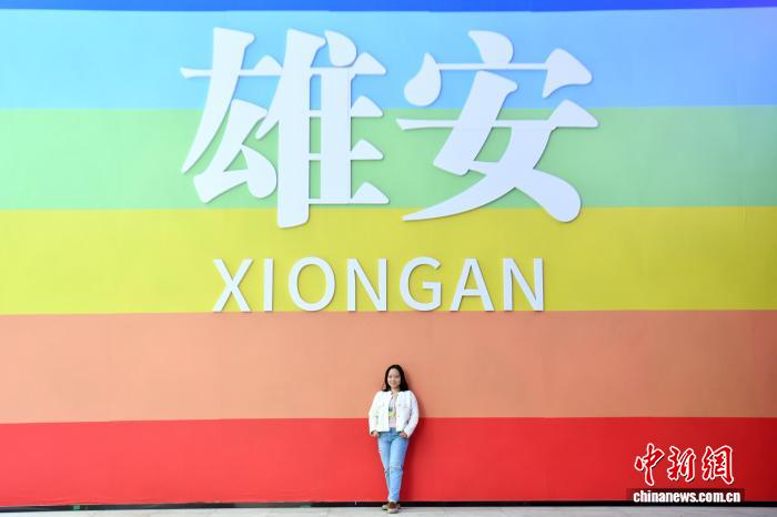 3月23日,郑艾玲在雄安拍照。 中新社记者 韩冰 摄