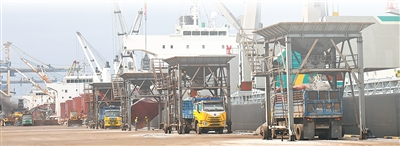 关丹港码头,卸船机正在作业。本报记者 白元琪摄