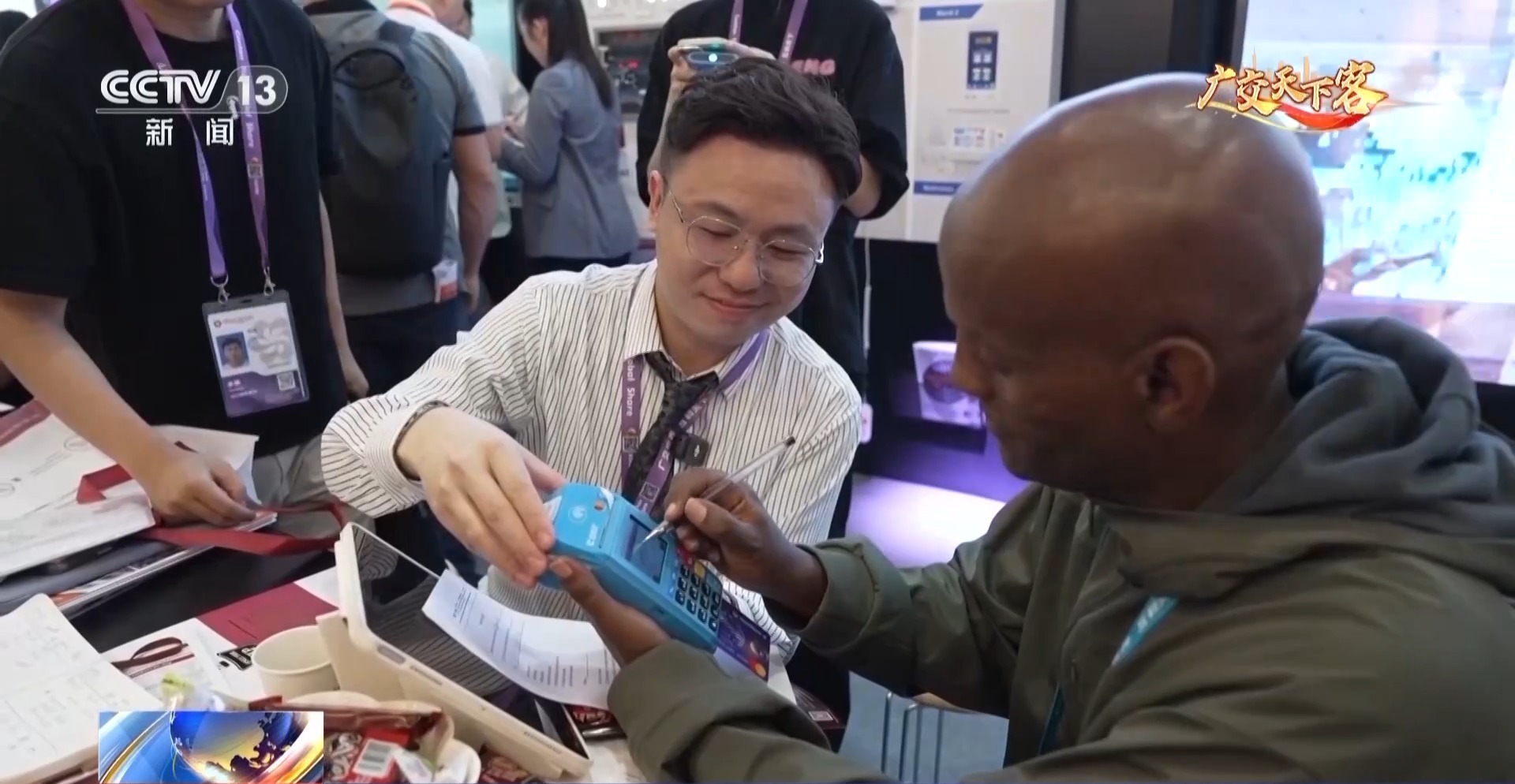 这位巴西采购商正在向工作人员了解有关酒店物品的情况。进一步沟通后,巴西采购商表示,此次来广交会是想为即将兴建的酒店项目,寻找能提供一站式工程服务的合作伙伴。了解到这一情况,参展商立即告知,公司还可为他提供更多服务。