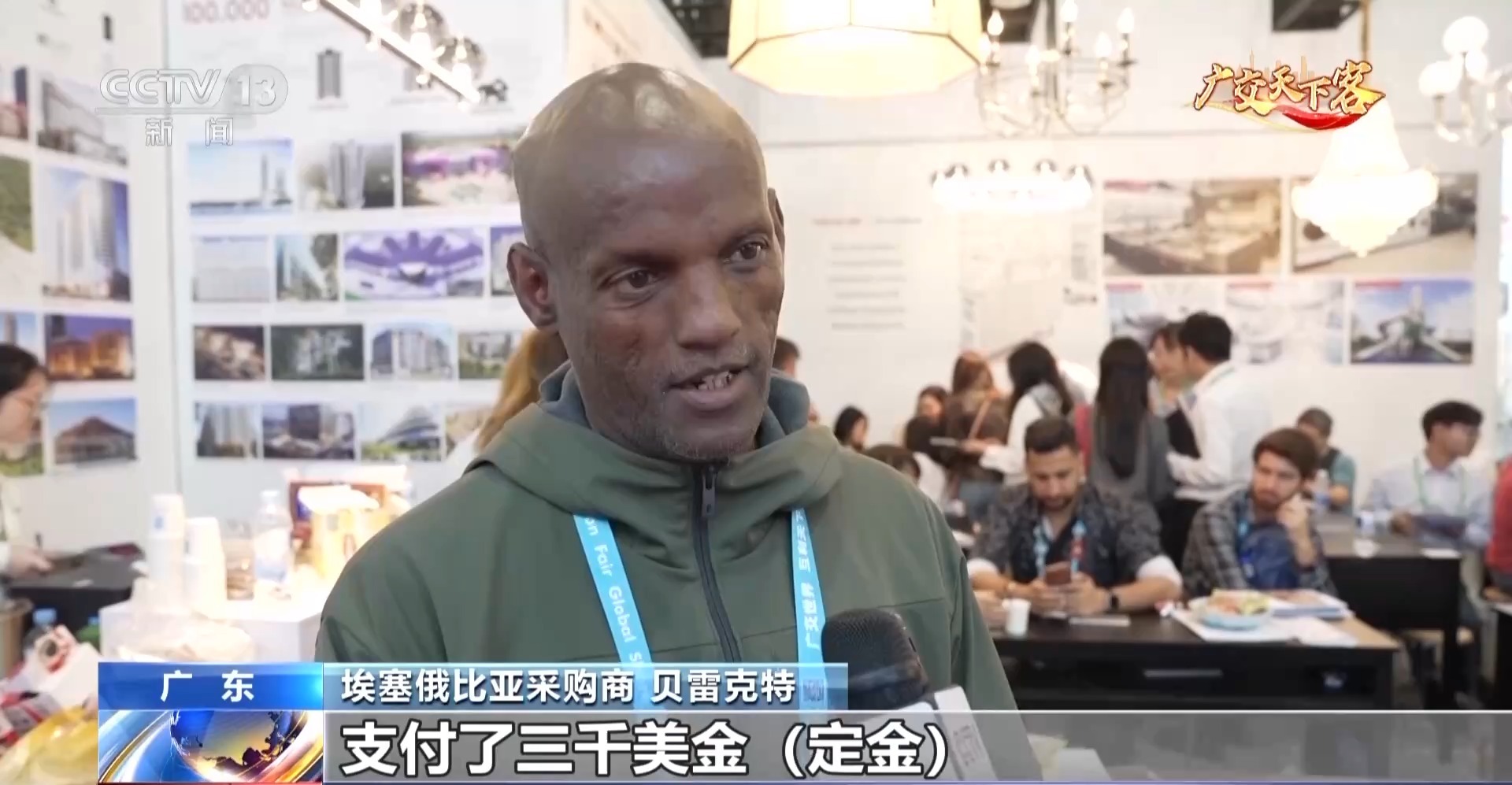 而埃塞俄比亚客商贝雷克特,在本次广交会上,要为计划兴建的公寓寻找室内装修所需的门窗、瓷砖、卫浴等产品,逛了一下午,他和一家企业就签下了三笔订单。