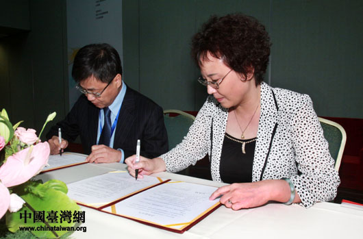 签约仪式由中国互联网协会秘书长助理孙永革主持,在两岸嘉宾的共同见证下,中国台湾网总经理兼总编辑刘晓辉与台湾中华联合集团执行长施义忠在意向书上签字。双方约定在共同组织网络内容、建立合作联系机制、促进人员技术交流、共同推展主题报道等方面进行深度合作。这也是中国台湾网继上届论坛与台湾时报资讯公司牵手合作后,与台湾媒体合作的又一硕果。