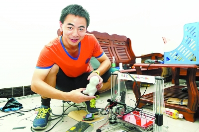 在丁齐全的工作室,有两台正在运行的3D打印机,竟是他自己组装的。他说,关键设备从网上淘,辅助设备就自己打印,总花费不过千余元,比市场上动辄几千上万的价格低多了。他打算在此基础上优化改良,开发小型迷你家庭玩具级别的打印机。(记者王震 通讯员谢晓丽 实习生周丽君)