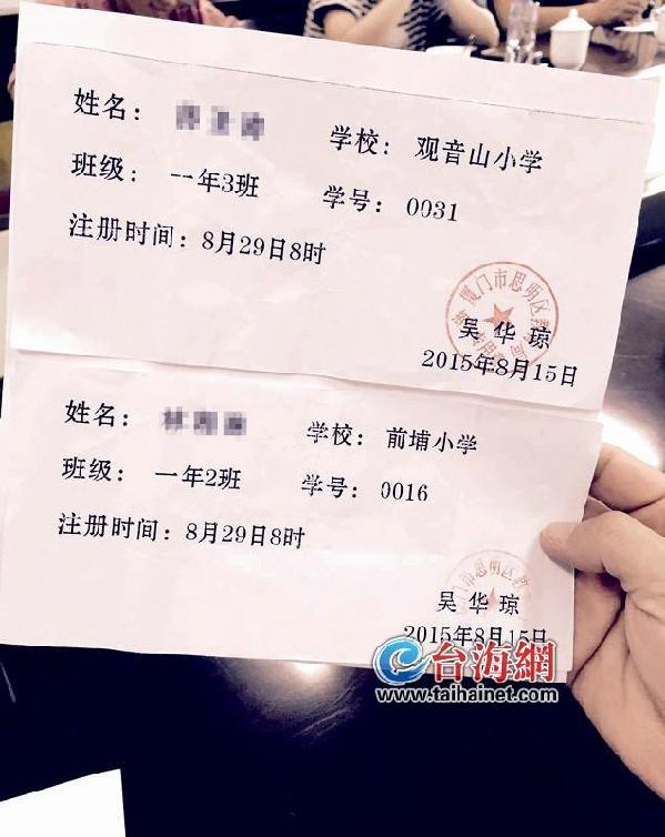 第三天,吴某突然出现,给了陈女士一张入学通知书,上面有孩子的姓名、班级、学号、注册时间等,还盖了“厦门市思明区教育局招生专用章”,落款是“吴华琼”。
