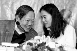 翁帆为杨振宁重复读者、媒体的问题。本报记者 蒲东峰 摄