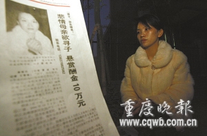 昨日下午,江津区东门广场,朱岩出现在记者面前。身穿粉色毛皮外套,驾驶一辆银灰色轿车,白净的脸上脂粉未施。见到记者,她有点不好意思:“平时都有司机开车,这次自己开,还不太熟练,所以来晚了。”她说,11日来到江津,4天来找遍了江津的各个角落,希望依然渺茫。
