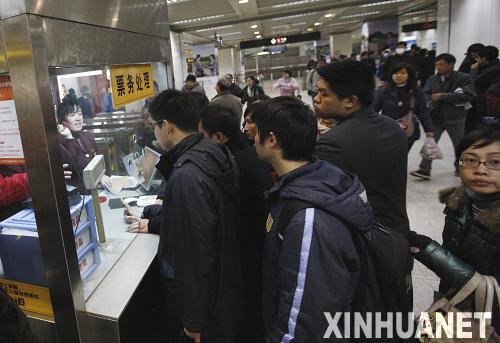 乘客在上海地铁1号线上海南站办理退票手续。新华社记者裴鑫摄