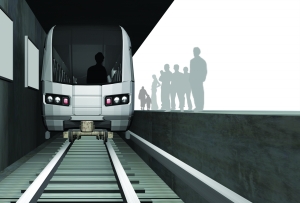 接触轨,又称第三轨,是车轮所在两条铁轨旁边的另外一条轨道,给列车供电。