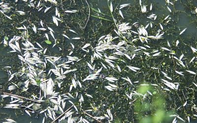 最近两天,家住南京集庆门大桥附近的市民发现,外秦淮河集庆门大桥段的水面上漂起不少死鱼,至少有数万条,这也引起了很多网友的关注。昨天又有市民向本报反映:在外秦淮河沿线发现死鱼,尤其是集庆门、水西门、汉中门大桥下附近较为严重。