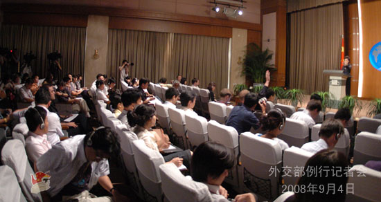 2008年9月4日,外交部发言人姜瑜举行例行记者会,主要就中国政府向联合国提交2007年度军事开支报告、南奥塞梯问题、朝鲜半岛核问题等答记者问。