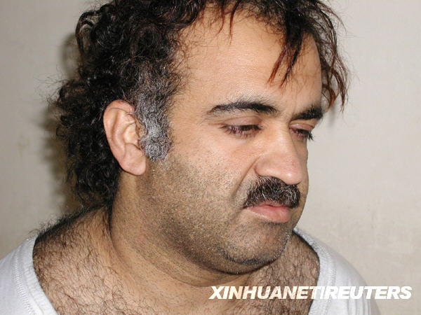 11月13日,美国司法部长霍尔德在首都华盛顿举行的新闻发布会上宣布,5名参与策划实施“9·11”恐怖袭击事件的嫌疑人将被送往纽约一家联邦民事法庭受审,其中包括“9·11”事件主谋哈立德·谢赫·穆罕默德。这5名恐怖袭击嫌疑人目前被关押在关塔那摩基地监狱。这是2003年3月1日拍摄的“9·11”事件主谋哈立德·谢赫·穆罕默德的资料照片。新华社/路透