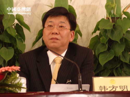 中国台湾网3月8日北京消息 今天下午,人民大会堂召开了全国政协十一届一次会议记者招待会。会议主题为“新阶层人士谈社会责任”。作为新阶层人士的全国政协委员韩方明出席了记者招待会,并回答了记者关于两岸的专业人士交流的提问。韩委员在记者招待会上讲到,贾庆林主席在政协报告中提出要密切与新的社会阶层人士联系,关注他们的利益诉求,畅通利益表达渠道。因此,他去年还专门提出希望大陆向台湾居民开放专业技术资格的提案,这个提案后来还被全国政协评为优秀提案。