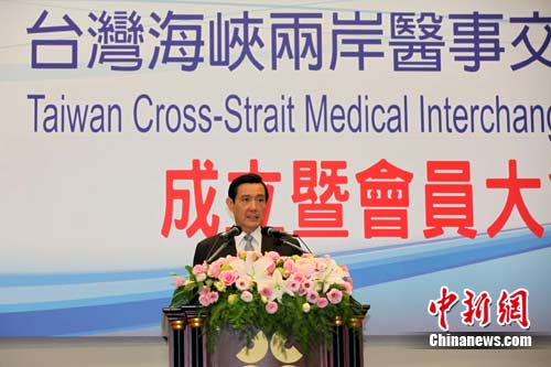 3月20日,由民间七大医事团体自发性组成的台湾海峡两岸医事交流协会在台北正式举行。图为台湾当局领导人马英九在该协会成立大会上致辞。作 者:董会峰