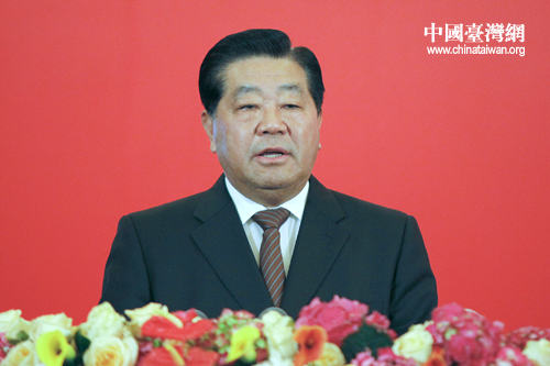 5月8日,第七届两岸经贸文化论坛在四川成都闭幕。中共中央政治局常委、全国政协主席贾庆林和中国国民党荣誉主席吴伯雄出席闭幕会。这是中共中央政治局常委、全国政协主席贾庆林致辞。(中国台湾网 田云鹏 摄)