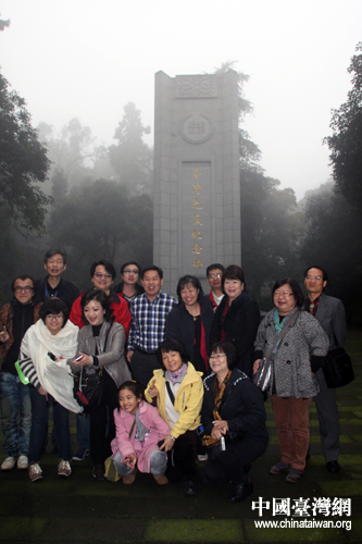 彰化媒体记者参访团16日至20日参访重庆,实地感受了重庆的现代都市风貌与发展进步。 图为参访团参观重庆抗战遗址博物馆时,在台湾光复纪念碑前合影。(中国台湾网 杨丽 摄)