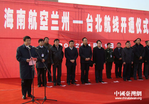 甘肃省政府副秘书长唐小明在首航仪式上致辞。甘肃省商务厅副厅长张世恩、省旅游局副局长杨宇宏、省台办副主任孙志中参加了首航仪式。(中国台湾网甘肃省台办通讯员 潘麒安)