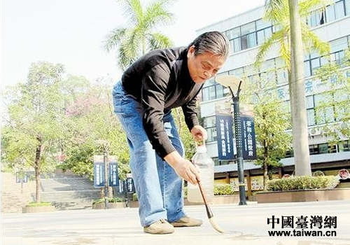 中国台湾网12月16日南宁消息 听台联的同志说,家住的南宁荣和山水美地的台胞罗承鹏是位很有造诣的水墨书法爱家,常在小区空地、广场清晨、傍晚用“地上书法”,引导青少年来传承中华文化,受到各界的好评。