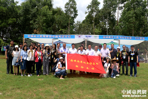 “海峡两岸记者特区行”联合采访团参访深圳市龙岗区全球鹰无人机飞行基地。(中国台湾网 尹赛楠 摄)