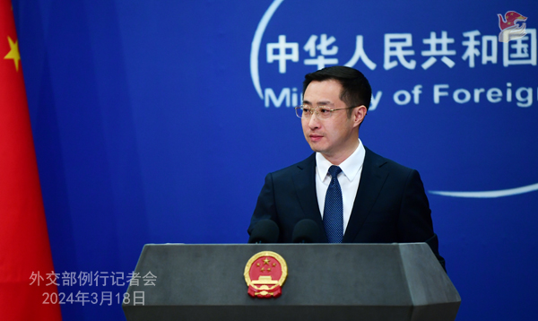 中新网北京3月18日电 (记者 郭超凯 黄钰钦)中国外交部发言人林剑3月18日主持例行记者会。