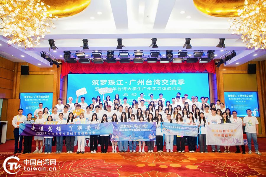 中国台湾网7月17日讯 7月17日,“筑梦珠江·广州台湾交流季”暨“2025年台湾大学生广州实习体验活动”在广州拉开帷幕。海峡两岸关系协会副会长马晓光、广州市委常委王焕清出席启动仪式并致辞,广东省台办副主任、一级巡视员黄兆芬,广州市台办主任、一级巡视员曾卫东,广州市台资企业协会会长王庆祥等出席。