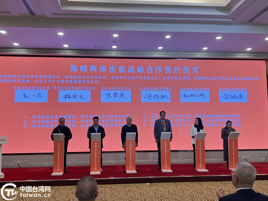 活动中,两岸六家相关单位与出版社共同签署了《海峡两岸出版战略合作协议》。这一意向协议的签署,标志着两岸出版人携手同行、共绘蓝图迈出了坚实的第一步。与会嘉宾一致认为,在协议的引领下,两岸出版领域的交流合作将结出丰硕成果,推动两岸出版人心灵契合,共同为强国建设、民族复兴贡献智慧力量。