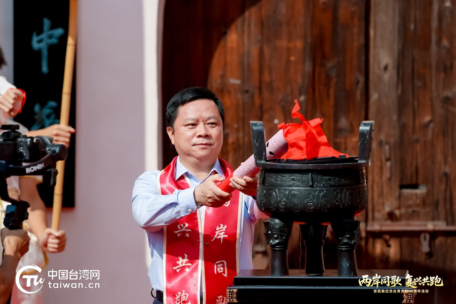 与会嘉宾点燃“民族复兴鼎”。(中国台湾网 发)