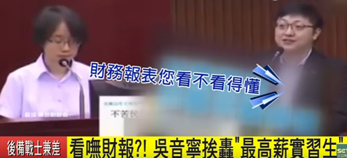 而吴音宁过去还曾是大名鼎鼎的“最高薪实习生”。2017年,在蔡英文当局强势拔掉台北农产运销公司(简称“北农”)前总经理韩国瑜后,任命并无企业经营和市场管理经验的吴音宁出任北农总经理一职,年薪250万元新台币,被质疑充满政治考量与算计。她任职北农期间,在台北市议会备询时多次出现不懂预算、答不出拍卖机制等情况,后更因春节后休市引发市场动荡等引发争议,最终在任职一年多后被解职。2024年吴音宁披民进党战袍参选民代失利后,被民进党当局任命为行政主管部门中部联合服务中心副执行长,再被外界质疑酬庸。