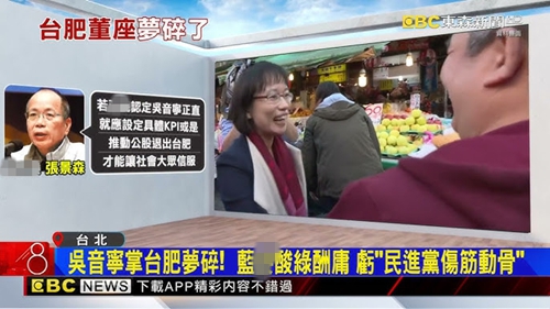 消息传出后,外界纷纷质疑政治酬庸,舆论炸锅。在舆论压力下,台肥11月3日晚发布公告,改由台肥总经理张沧郎接任法人董事。4日,董事会通过由张沧郎出任董事长,而吴音宁则担任董事,仍可拿到500万元新台币的年薪。