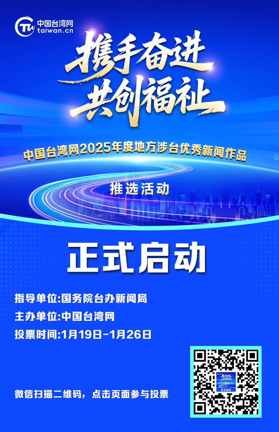 为系统盘点、梳理过去一年地方涉台活动精彩亮点,展示各地涉台工作成效,进一步凝聚两岸同胞推动实现祖国统一的网络共识,经国务院台办批准,中国台湾网“2025年度地方涉台优秀新闻作品”推选活动于1月19日正式上线启动。