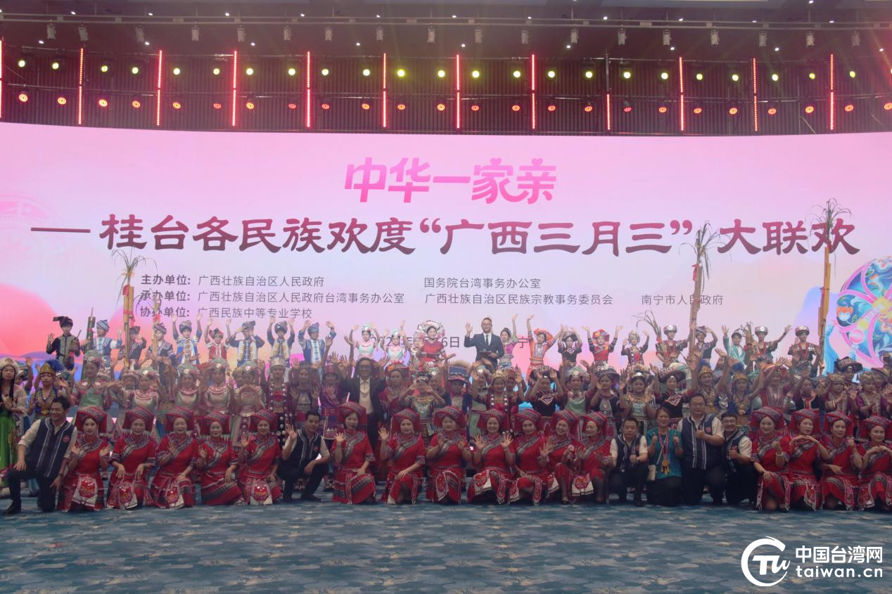 中国台湾网南宁4月17日讯(记者 李宁)春风送暖百花开,八桂大地迎客来。4月16日,中华一家亲——2026年桂台各民族欢度“广西三月三”大联欢活动在广西南宁隆重举行。500余名桂台两地同胞跨越山海,以歌舞为桥、以情谊为舟,共叙血脉亲情。