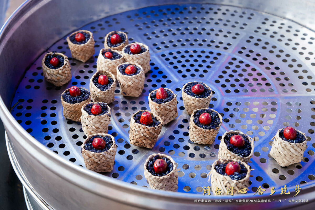 中国台湾网4月23日讯 4月19日,福建漳浦赤岭畲族乡石椅村热闹滚滚,“闽台同心 畲乡筑梦”——闽台老家族“寻根·福见”交流营暨2026年漳浦县“三月三”畲族文化活动登场。近80位来自台湾各地的蓝氏宗亲,跨越海峡回到总祖祠“种玉堂”寻根,透过畲族传统美食、歌舞与文化体验,见证两岸蓝氏血浓于水的亲情,一碗碗香气四溢的乌米饭、糍粑,更成为两岸同根同源最温暖的见证。