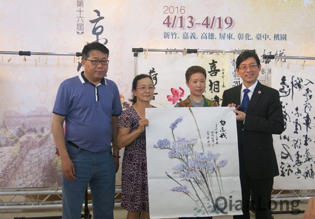 在笔会交流的现场,两岸书画家挥毫泼墨,还为彼此的书画作品题字落款。台湾本地画家康美智,气质隽永,画如其人,师从岭南画派。“岭南画派”融汇中西绘画之长,创制出有晕染柔和匀净的现代绘画新格局。“在台湾,岭南画派是比较主流的画派,因为我们这边很少有大山大水,最主要的就是小幅作品展现风景。”康美智对记者说,“第一次和大陆的书画家有近距离的交流,开阔眼界,是很难得机会。台湾这边主要还是小范围的技艺切磋,画作也会成为聚会时摸彩的奖品。”书法家刘楣洪特别为她的画作题字“山高水长”,寓意两岸同胞情谊绵长。