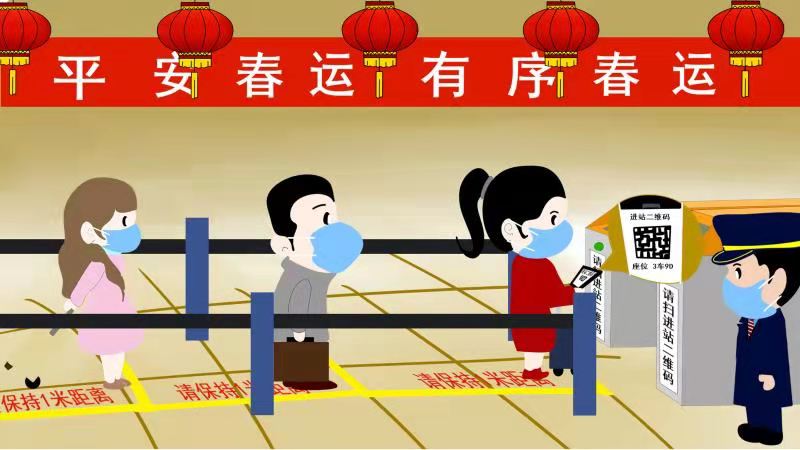 让春运之路更平安,很多车站已经全面实施电子客票,旅客购票、进站、候车、出站、换乘全过程“无接触”服务。与此同时,严格执行测温、戴口罩、“一米线”等防护措施,严格按要求做好进口高风险非冷链集装箱运输工具消毒、从业人员防护等相关工作,严把第一道关口。