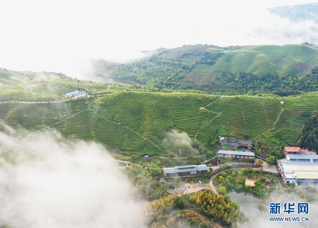 这是4月1日拍摄的福建省天湖茶业有限公司的一处茶叶种植基地(无人机照片)。新华社记者 林善传 摄