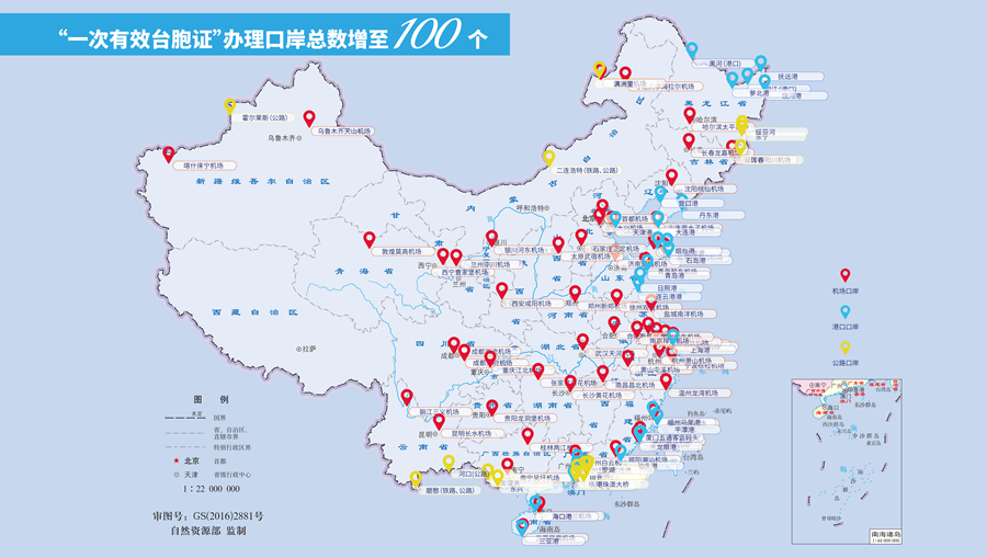 11月20日起,可签发一次有效台湾居民来往大陆通行证口岸数量至100个。(国务院台办微信公众号)