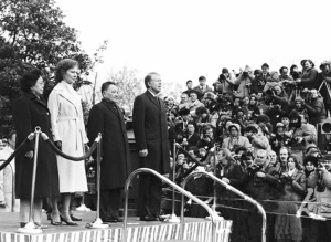 1979年1月邓小平访美,部分留学生到机场迎接并参加美国总统卡特举行的欢迎仪式