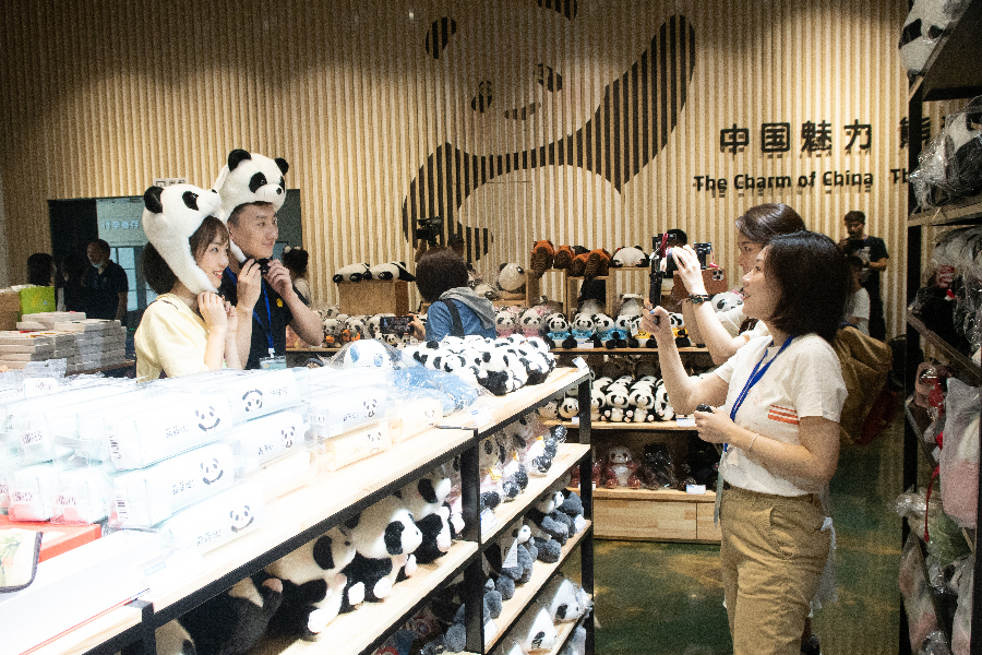 两岸记者报道成都大熊猫繁育研究基地文创产品