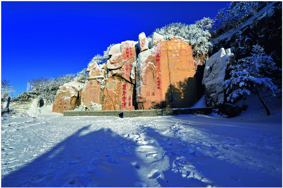 大观峰冬雪--唐玄宗封禅泰山,破天荒地将自己对上天秘语的封禅书昭告天下。他说,我来祭天不为私利,只为天下苍生祈福,可让“天下大观”。 图文:王德全