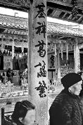 写有对联的大石柱。