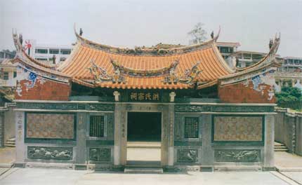 营前洪氏宗祠兴建于何年代,无史可稽。据“大营前洪氏族谱”重修时间推断,宗祠曾于清雍正乙巳年重修过,距今270余年。另据祖辈传说,清嘉庆年间,营前著名船长因受蔡骞“海盗”案件株连,致使宗祠遭清军官兵焚毁,大厅口石吟火烧痕迹可作历史见证。直至道光年间才按男丁人数集丁钱修复。此后历经1 7 O余年风雨虫蚁侵蚀,久年失修,加上“文革”期间祖宗神主被焚烧,宗祠长期无人管理,致屋盖破漏,中脊已处下塌之危。