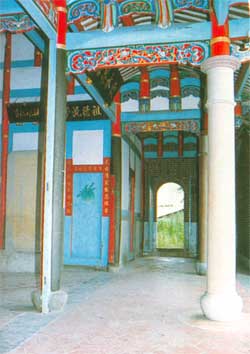 距何氏家庙左后方约三十公尺处,另有一小型宗祠“昭善祠”,属于同一时期的建筑,格局、神龛亦均同于大家庙,只是规模小了许多,而屋脊改燕尾式为马背式。神龛主祀历世考妣何公妈大家香位牌,也并祀堂上黄、罗、刘姓历代祖考妣之神位。大小两面三刀座宗祠设在一块儿,这是别处不曾见过的现象,十分有趣。