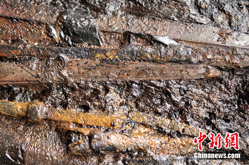 中新网淮安7月29日电 (朱晓颖 唐娟)29日,江苏盱眙大云山西汉大墓进行考古发掘现场又有新发现:戟、矛、剑、铍、锥、弩机、箭镞、铠甲等一大批精美的兵器被陆续发掘出土。这些再次暗示,墓主人身份极其显贵,或是西汉诸侯王。