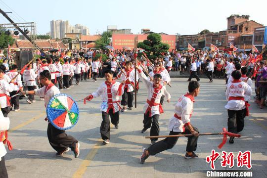 身着各宫庙“制服”的台胞进香团队在锣鼓与舞队的簇拥下,陆续走进天后宫。吴财福介绍说,“参加湄洲湾的进香后直接来到泉州,天下妈祖是一家,泉州妈祖自然缺不了。”