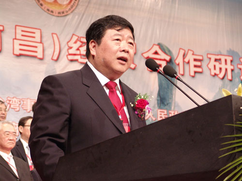 吴新雄指出,当前我们经济发展面临着严峻的国际形势,赣台两地进一步加强经贸合作显得尤为重要和必要。今年4月,胡锦涛总书记提出了“建立互信、搁置争议、求同存异、共创双赢”的“十六字方针”,为开创两岸关系和平发展新局面提供了重要保障。台湾地区出现了加强两岸交流合作的重大变化,为进一步加强赣台经贸合作创造了极为有利的条件和机遇。这些年来,赣台两地通过共同努力,友好往来日益密切,经贸合作不断加强,给两地同胞带来了切实的利益。截至今年上半年,江西累计批准合同台资项目2256个,合同台资额85亿美元,实际利用台资32亿美元。台湾已经成为江西利用外资的主要来源地,许多在赣台资企业也获得了丰厚的回报。现在我们又设立了5个台资企业转移承接基地和5个台商创业园。这为进一步加强赣台经贸合作奠定了牢固的基础,创造了良好的条件。