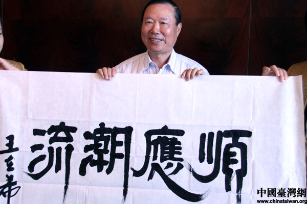 海协会副会长王在希“顺应潮流”四字为本次两岸退役将军的交流写下最好的注脚(中国台湾网 李徽 摄)